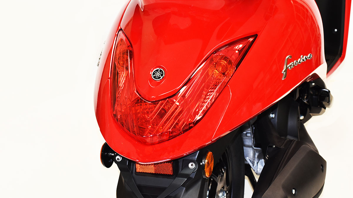 Este modelo fue diseñado para ser un scooter de moda con un estilo que encarna la fuerza, el refinamiento y la belleza, al mismo tiempo que incluye toques clásicos. Líneas de flujo del cuerpo y superficies que crean hermosos reflejos. Cuando la luz golpea las superficies lisas los reflejos resultantes traen al cuerpo de la nueva Fascino una variedad de expresiones diferentes.