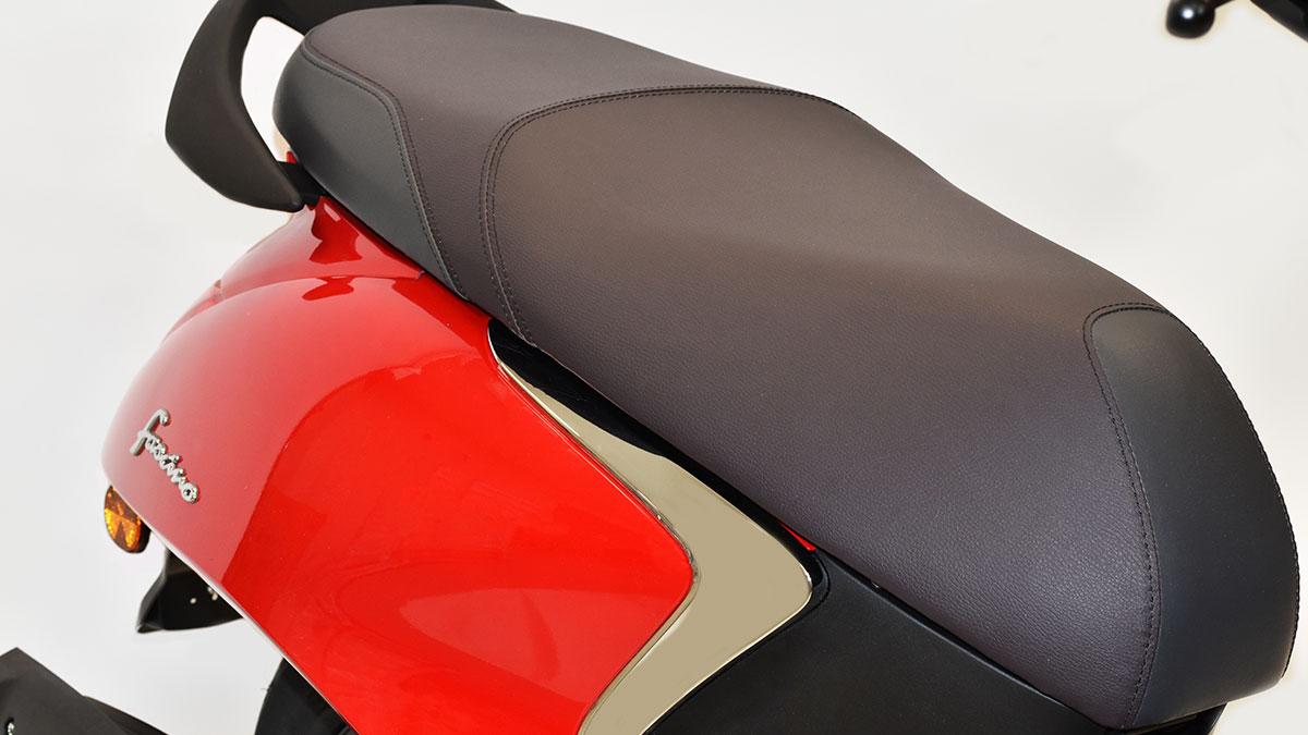 Se ha desarrollado un cuadro ligero de nuevo diseño con un equilibrio optimizado de resistencia y rigidez. Esto le da a la nueva Fascino un peso en vacío de 99 kg, que es 4 kg más ligero que el modelo actual, y da como resultado un manejo y una maniobrabilidad ágiles. Combinado con el ahorro de peso de las llantas de aluminio fundido, esto crea el carácter de manejo ágil.