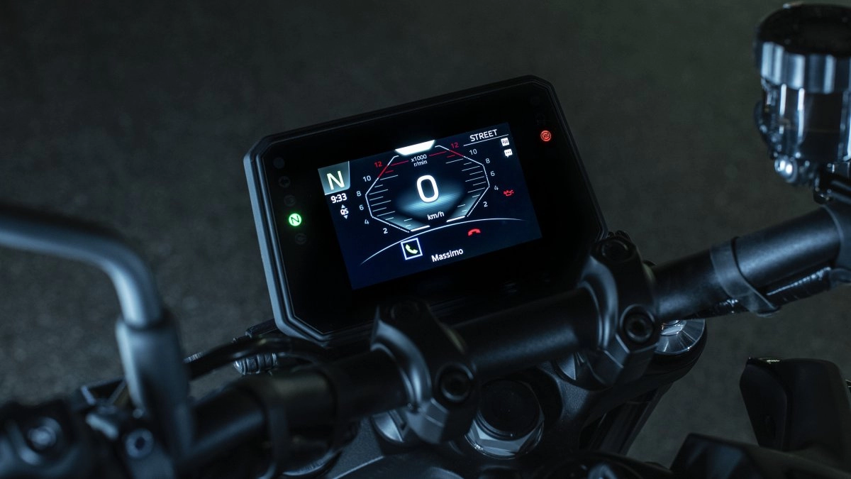 Una nueva pantalla TFT a todo color de cinco pulgadas ofrece al conductor la opción de cuatro temas diferentes para adaptarse a situaciones de conducción específicas o preferencias individuales. La navegación por la nueva pantalla se realiza a través de nuevos interruptores integrados en el manillar. La forma y el tacto de los botones se han perfeccionado ampliamente para proporcionar un funcionamiento intuitivo en una solución compacta y fácil de usar.